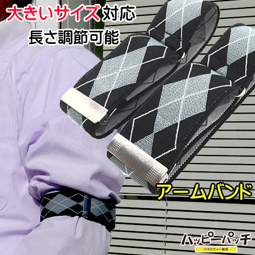 アームバンド メンズ 袖 大きいサイズ 対応 グレー黒チェック サイズ調節可能 AP-011 シャツ 袖丈 調節 腕輪 幅広 メール便OK