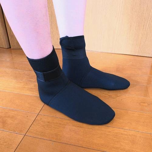 ウェットスーツにも使われるネオプレン素材の発熱ソックスです。