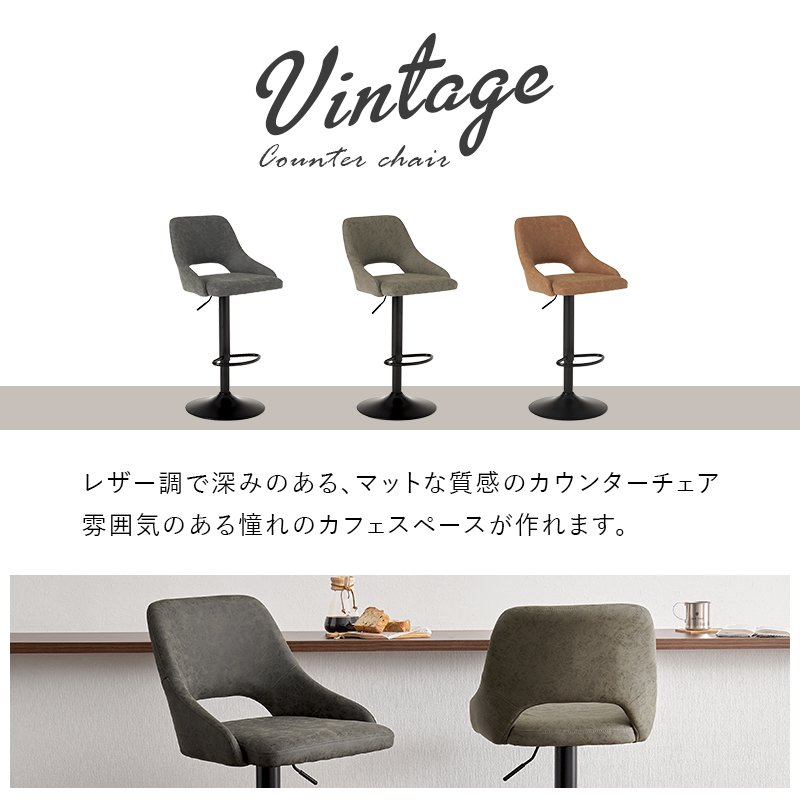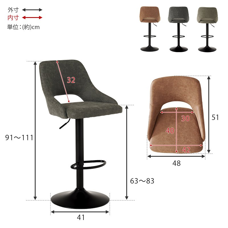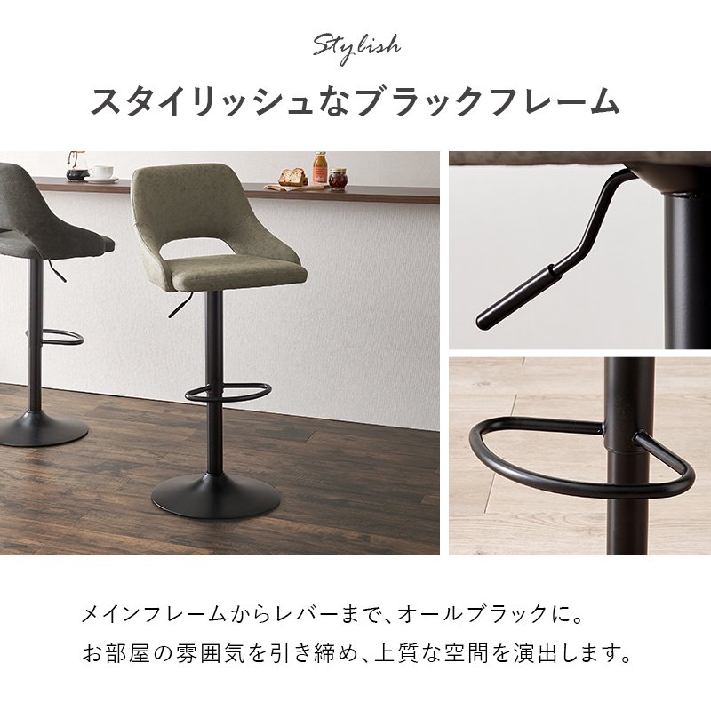 カウンターチェア ガス圧昇降式 高さ調節 座面高63cm-70cm-80cm-83cm