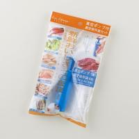 生鮮食品から乾物類まで、冷凍・冷蔵・常温と簡単操作で、幅広く使える真空保存袋です。袋に食材を入れて二重になっているジッパーを閉じたら、真空ポンプで袋の中の空気を抜くだけ。洗って繰り返し使用できるから経済的です。スターターセットは保存袋Sサイズ、Mサイズ各3枚に真空ポンプが入っっています。