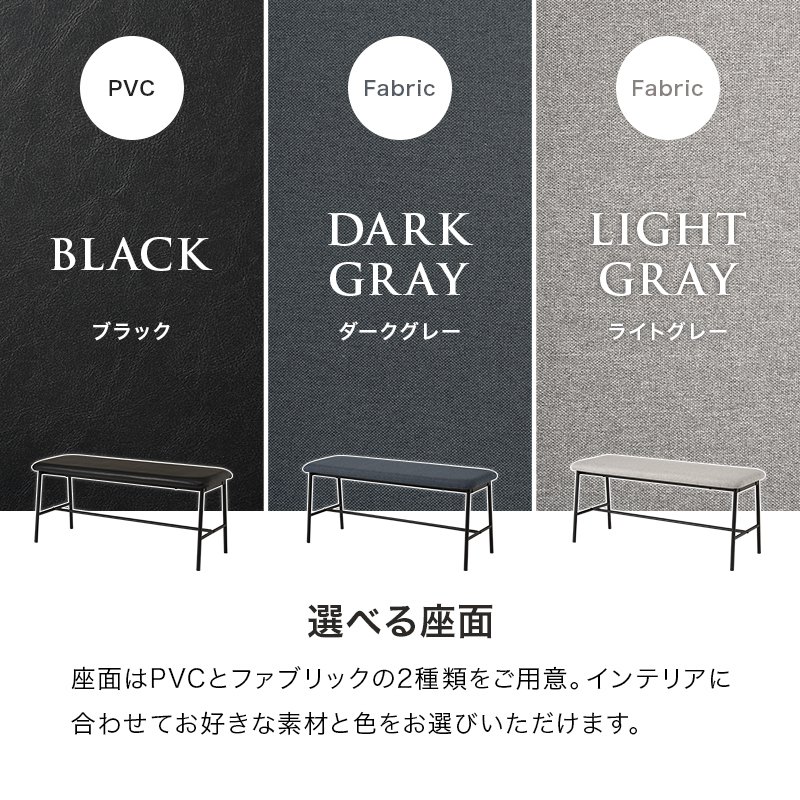 ベンチ単品 幅102×37×43cm 2人掛け 黒 異素材 二人用 二人掛け ブラック ダイニングベンチ 2人用 グレー おしゃれ