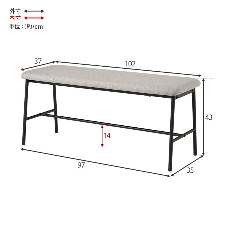 (タイムセール中) ダイニングベンチ 2人掛け ベンチ単品 幅102×37×43cm 異素材
