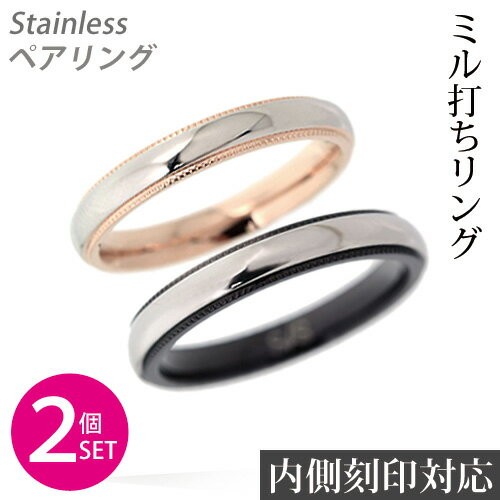 シンプルなサージカルステンレスのミル打ちリング。繊細で上品なサイドに入ったミル打ち、ペアリングにおすすめ。PVD加工と言う特殊なコーティングでカラーバリエーションが豊富にあります。