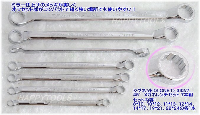 332/7 シグネット(SIGNET)のミラー仕上げの45°メガネレンチセット7本組のご案内です。