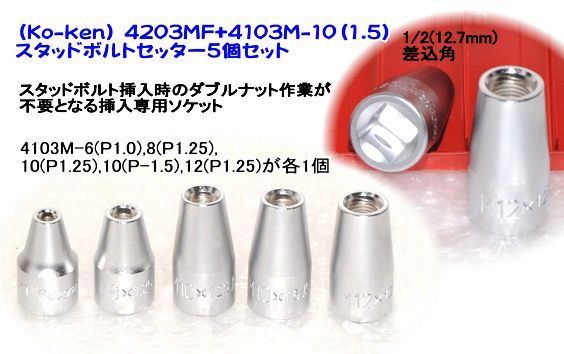 在庫有 4203MF+4103M-10 コーケン(Ko-ken) スタッドボルトセッター5個セット インボイス制度対応 代引発送不可 全国送料無料 税込特価