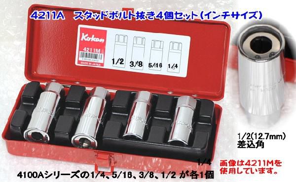 コーケンのスタッドボルト抜き(インチサイズ)4個セット 4211A のご案内です。