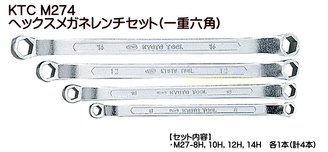 M274 KTC ヘックスメガネレンチセット(一重六角) 4本組 のご案内です。