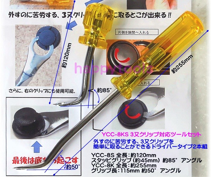 | 今月の注目商品!在庫有!即日出荷!!☆☆【代引発送不可】 クリップクランプツールセット YCC-8KS 内張ハズシ YCC-8KS 3又クリップ対応ツールセット YCC-8S 全長:約120mm スタッビグリップ(約45mm) 約85°アングル YCC-8K 全長:約255mm グリップ長:115mm 約50°アングル 外すのに苦労する、3又クリップを簡単に取ることができる!! ドライバータイプ2本のセットです。 ※注意事項※ 急な注文により、在庫状況(納期案内)の変更が遅れる場合もありますので、お急ぎの場合など、 お気軽にお電話・メール・FAXでお問合せ願います。 販売元:ハッピーツール【フジ機器販売】 店舗電話番号:0956-68-2170【平日9:00〜18:00】 店舗携帯番号:080-5246-2029【平日9:00〜18:00】 店舗FAX番号:0956-68-3586【24時間いつでも】 アドレス:happy@happytools.com【24時間いつでも】 ☆☆販売価格は消費税込みです。品物はもちろん新品です。送料は下記の通りです。☆☆ |