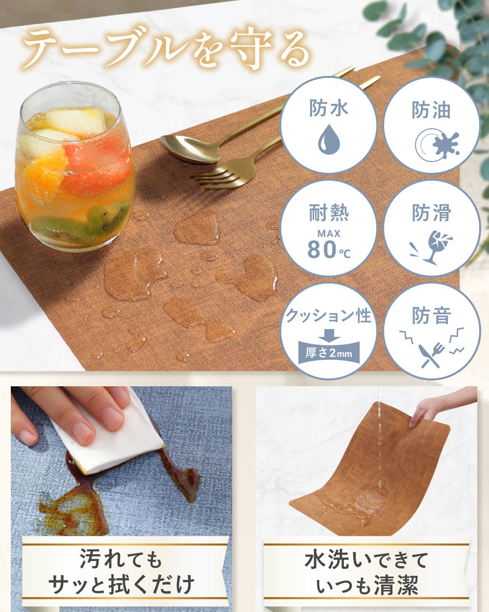 ランチョンマット 洗える 耐熱 撥水 おしゃれ 小学生 幼稚園 ノーアイロン 高品質 PUレザー ランチョマット プレースマット 給食 大判 北欧 滑り止め 和 モダン PU 高級 30 45 アイロン不要