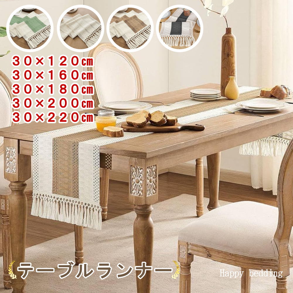 テーブルランナー 北欧 和風 おしゃれ フリンジ 180×30cm クリスマス 和モダン シンプル 幅広 食卓