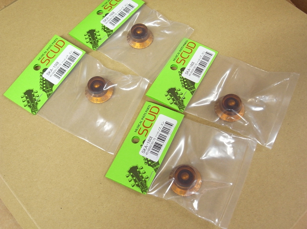 ■【新品・4個組】SKA-160I・SCUD・ハットノブ・アンバー・インチ規格・エンボス文字・レスポール・エレキギター・ギブソン