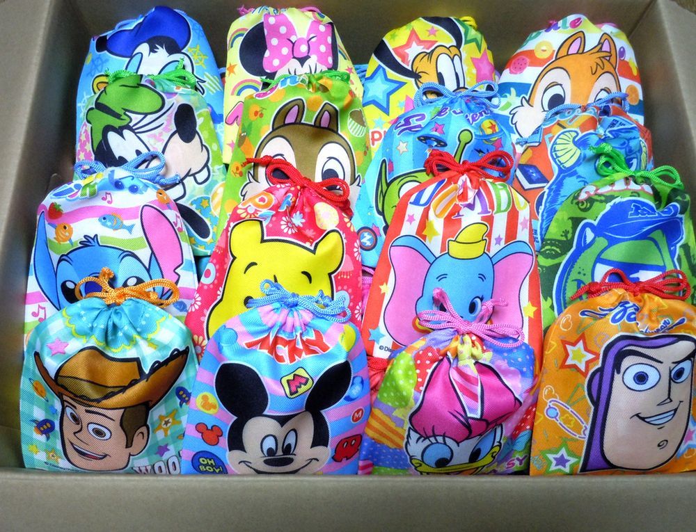 ディズニー ミニの可愛い巾着袋に人気のお菓子を入れた可愛い 駄菓子詰め合わせ。