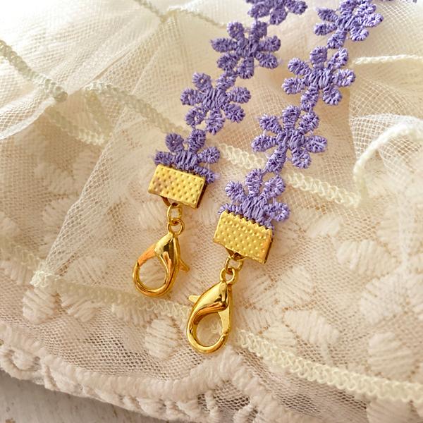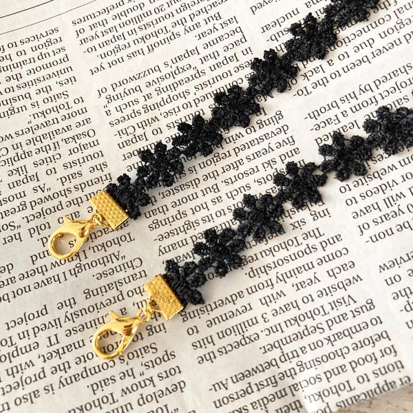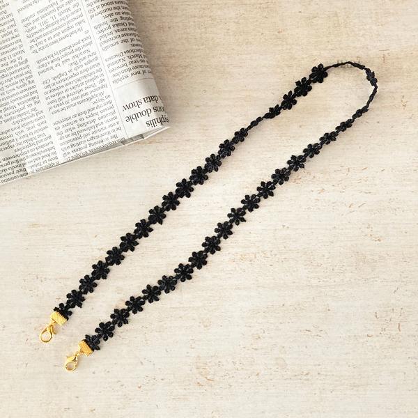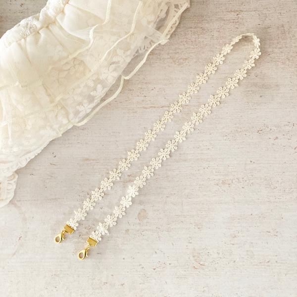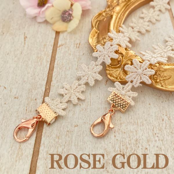日本製 マスクレースおしゃれ 秋冬 ネックストラップ 金属アレルギー対応 マスクコード ストラップ レース 花柄 マスク ストラップ マスクバンド (ゴールド)