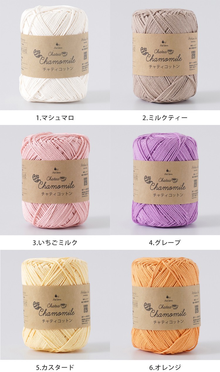 毛糸「チャティ」シリーズは、編み物初心者さんが毛糸を購入するハードルを少しでも下げたいという思いから、とってもお手頃価格でご用意しました。ただお安いだけでなく、編み終わった後も「使い続けたい」と思えるような色と風合いにこだわって商品企画をしています。せっかく毛糸を購入しても完成させる自信がない方、ぜひ一度お気軽に「チャティ」シリーズで編み物を始めてみてください。