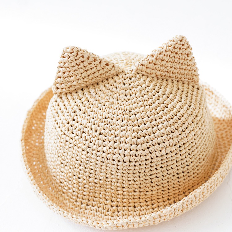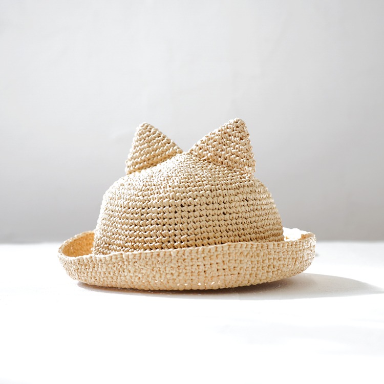 思わず子供にかぶせたくなる猫耳付きの帽子。もちろん猫耳をつけなくてもお洒落な麦わら帽子風になります。こげ茶色で丸い耳をつけたらクマさんの帽子もできますね。