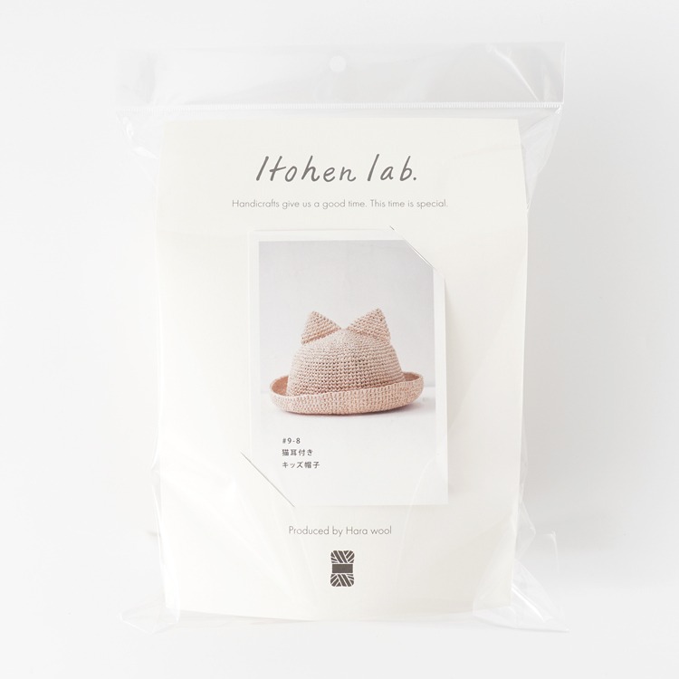 編み物キット #9-8 ねこ耳付きキッズ帽子 帽子 ハット ストロー ストローハット 子ども キッズ 春 夏 手作り キット ニット 手芸 毛糸 おうち時間