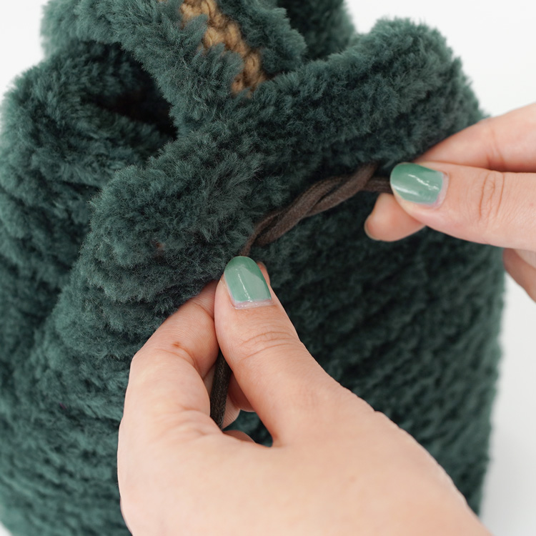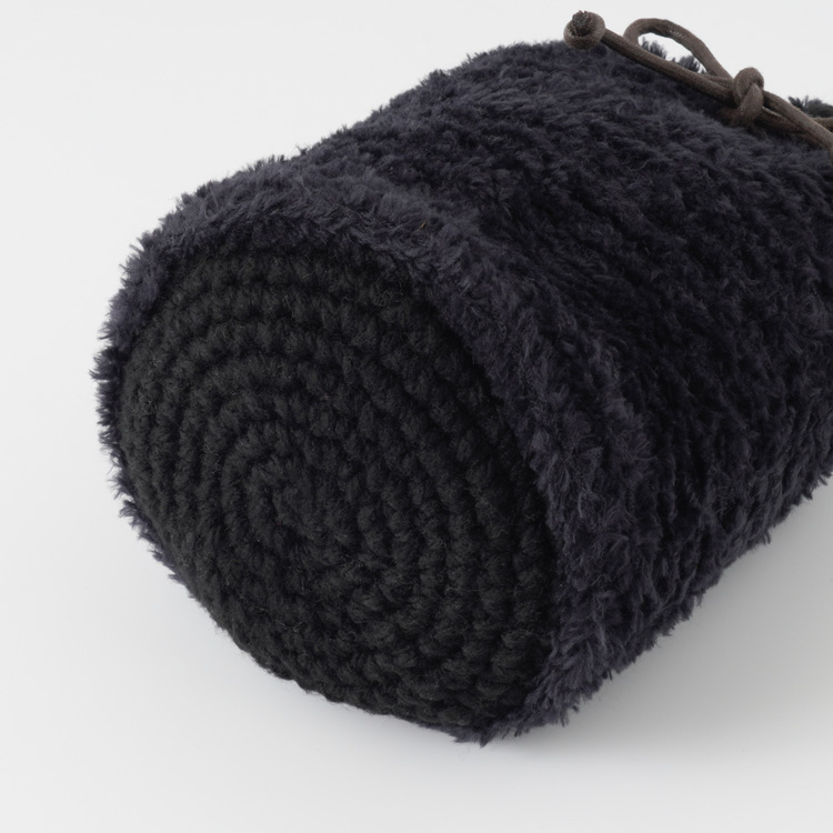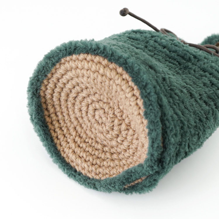 かぎ針編みの編み地に、ファーの編み地を上から編みつけて作っていきます。チラッと見える底のこま編みもかわいいです。