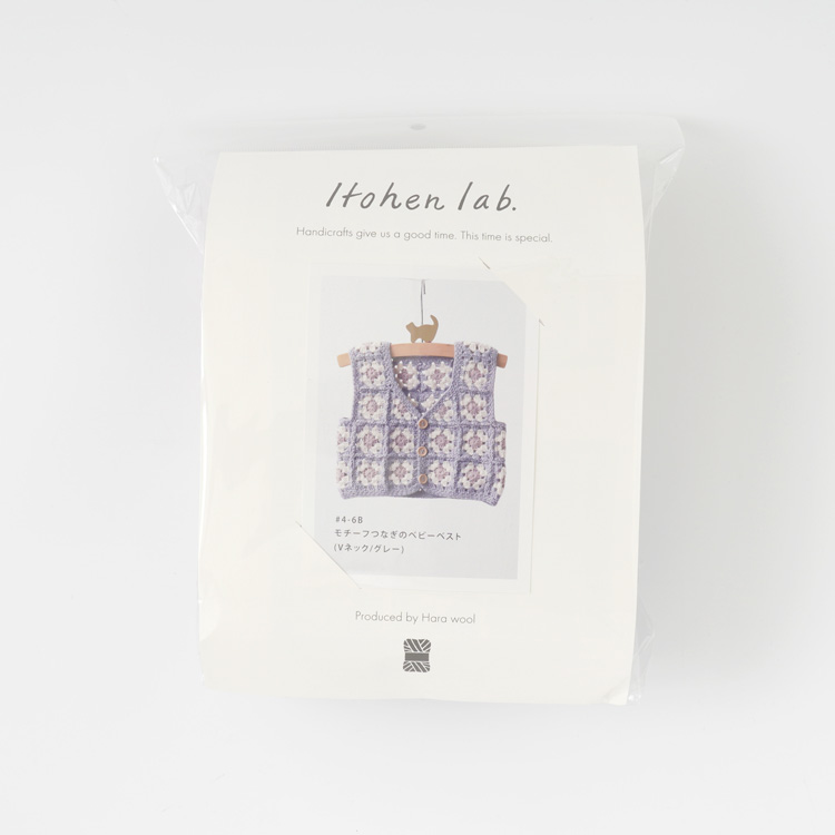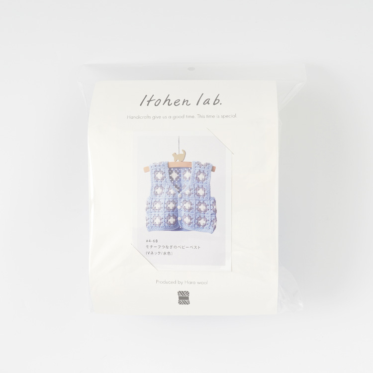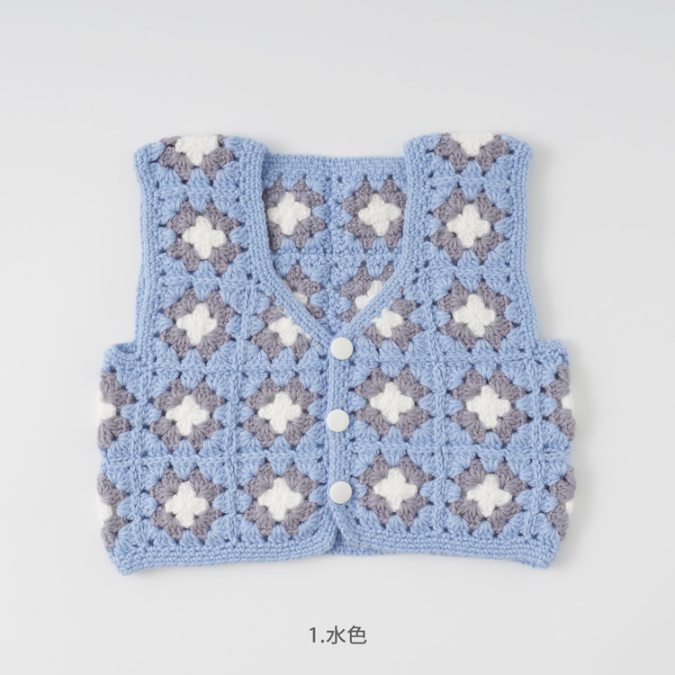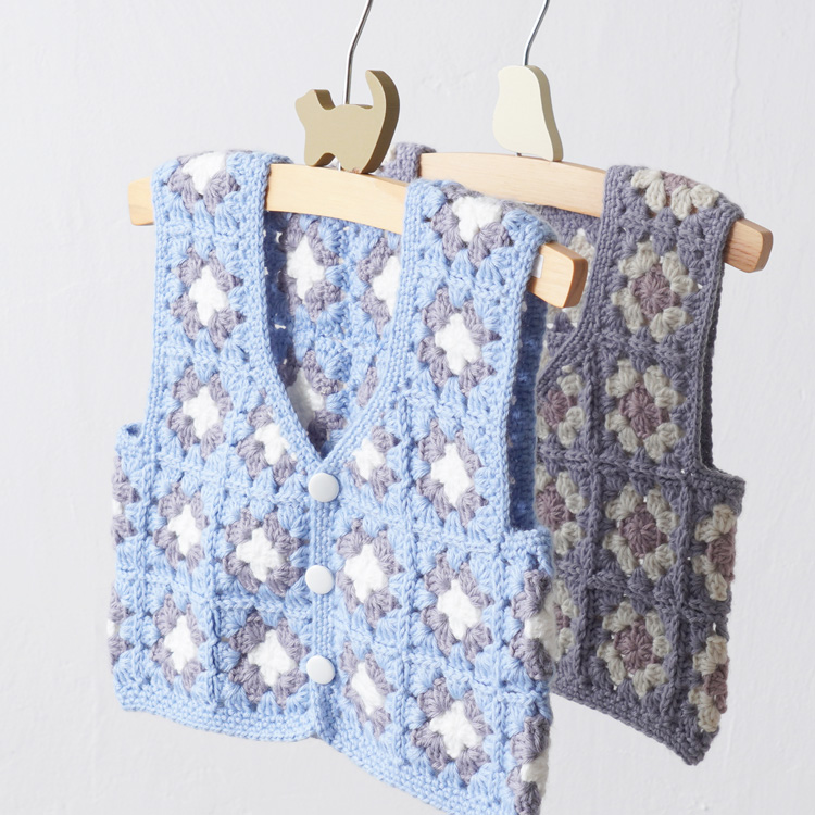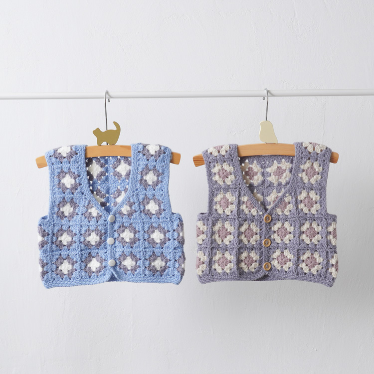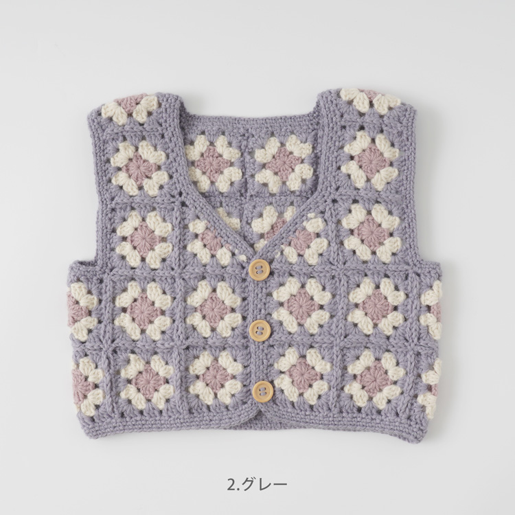 | 編み物キット #4-6 モチーフつなぎのベビーベスト(スクエアネック) | 編み物キット #11-6 柄モチーフのベビーベスト |