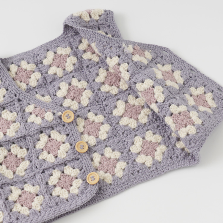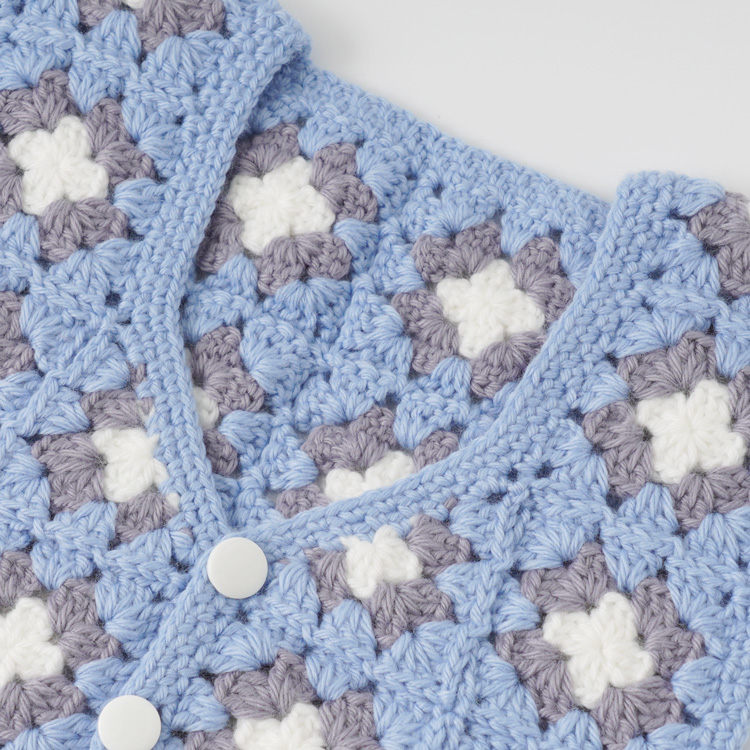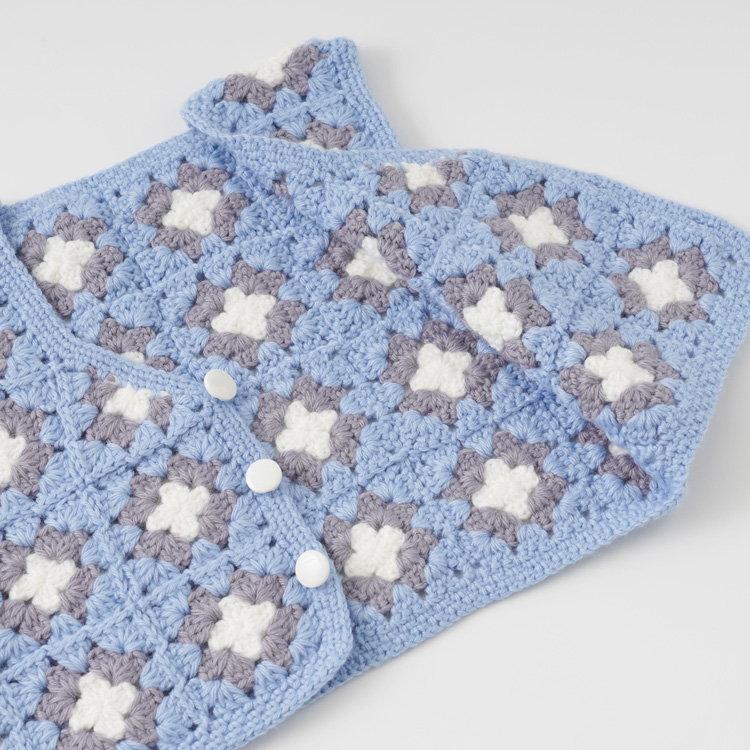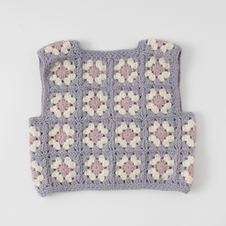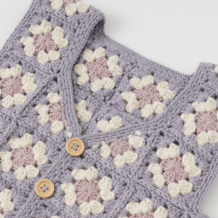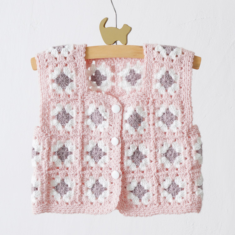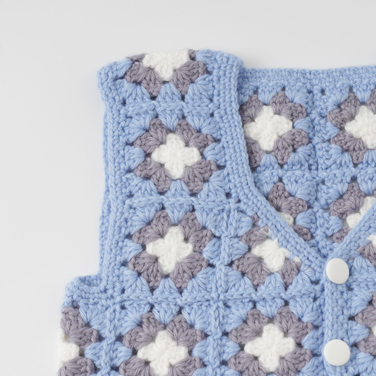 | 編み物キット #4-6 モチーフつなぎのベビーベスト(スクエアネック) | 編み物キット #11-6 柄モチーフのベビーベスト |