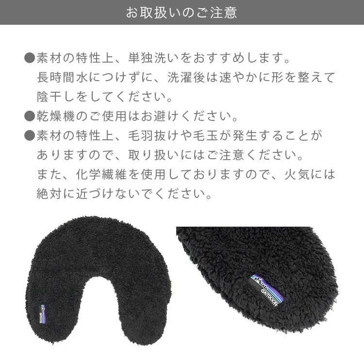 | お取扱いのご注意 | ●素材の特性上、単独洗いをおすすめします。 長時間水につけずに、洗濯後は速やかに形を整えて陰干しをしてください。 ●乾燥機のご使用はお避けください。 ●素材の特性上、毛羽抜けや毛玉が発生することがありますので、 取り扱いにはご注意ください。 また、化学繊維を使用しておりますので、火気には絶対に近づけないでください。 |