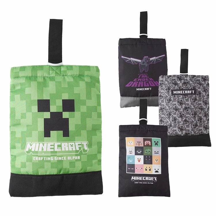 大人気ゲーム「マインクラフト」のキルトシューズケース。ふわふわ中わた入りで、厚みのあるシューズケースになっています。内側にはネームラベル付き。お洗濯もOKです。
