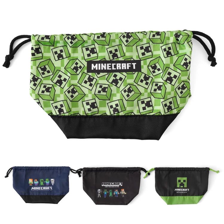 大人気ゲーム「マインクラフト」のマチ付き巾着。広めのマチなのでお弁当やコップを入れたり、ランチバッグとしてもお使いいただけます。