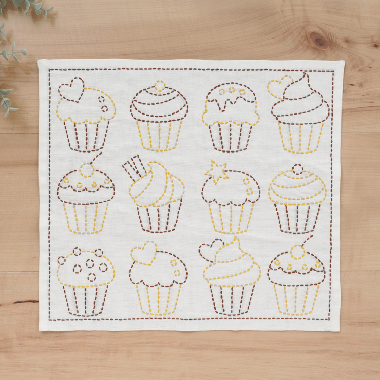 爆買 原ウール 刺し子キット 図案に沿って刺すだけ!かんたんキット 刺し子のふきん カップケーキ 刺し子 キット お菓子 刺繍 夏休み 工作 自由研究
