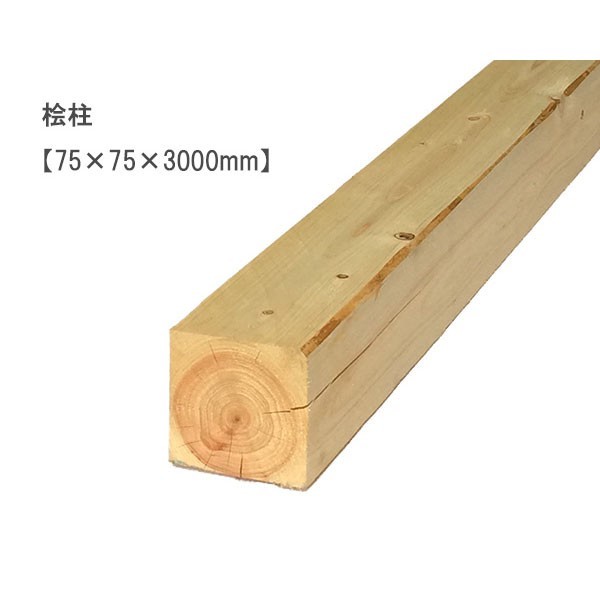桧柱 (75×75×3000mm) ヒノキ ひのき 無塗装 DIY 木材