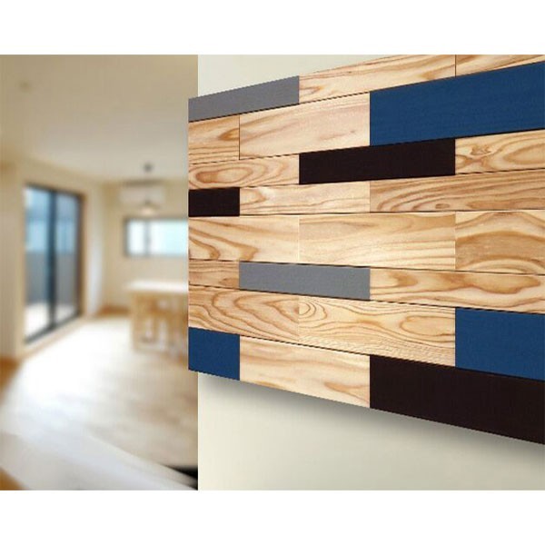 | 壁に貼る木材。お部屋や店舗にアクセントとして。無垢材の優しい雰囲気がオシャレ度UPです。あえて板厚を変え、異なるサイズを組み合わせることでデコボコした味のある壁にアレンジ!基本な組み合わせでご案内しますが、お客様で配置を変えて施工いただいても問題ございません。 | |