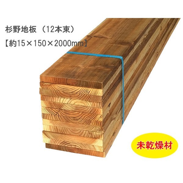 杉野地板 (約15×150×2000mm)(12枚束) 未乾燥 スギ すぎ 無塗装 DIY まとめ買い