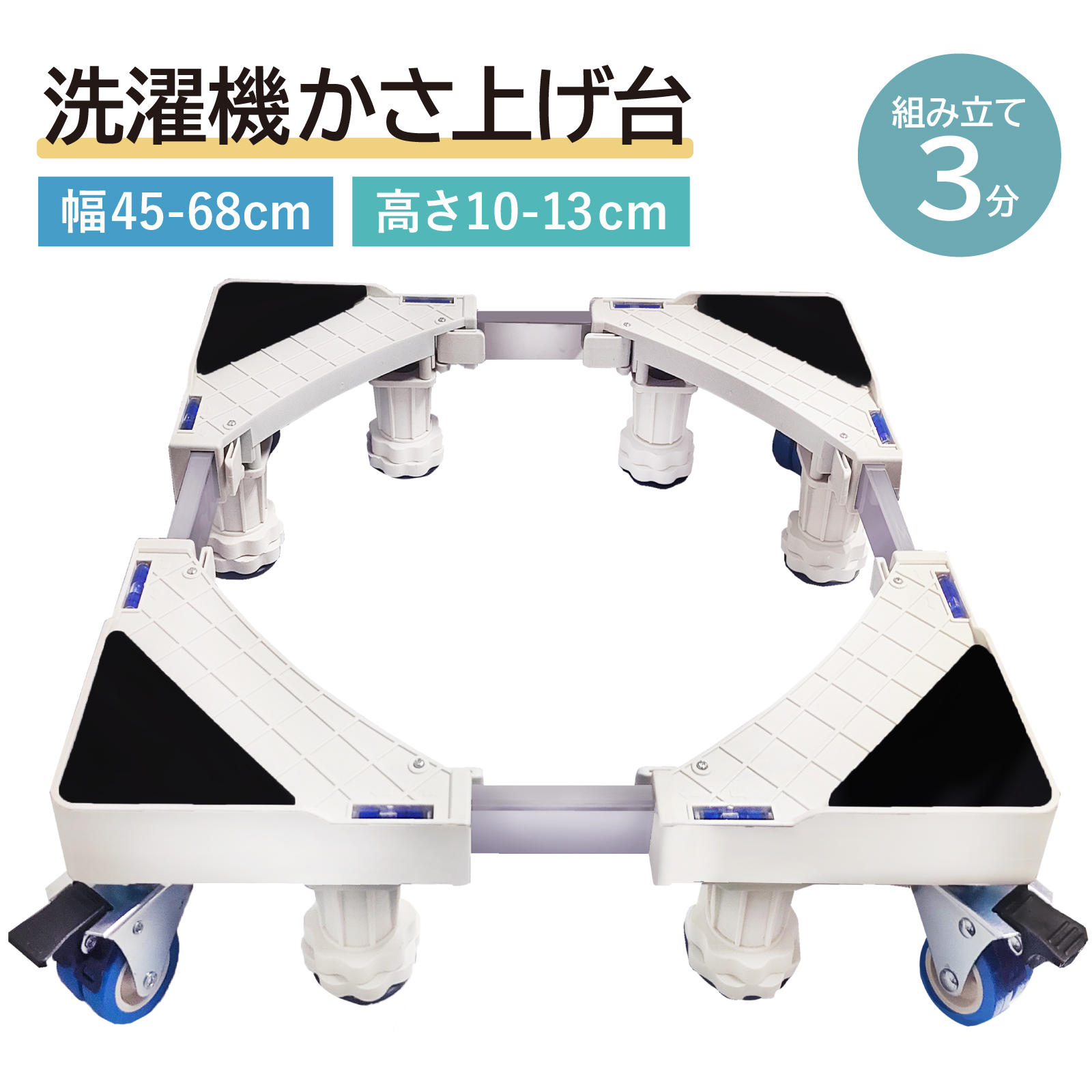 洗濯機置き台 キャスター付き 洗濯機台かさ上げ キャスター 洗濯機嵩上げ台 洗濯機台 防水パン 冷蔵庫 洗濯機 ドラム式 10cm 4輪8足 組み立て簡単 幅45-68cm