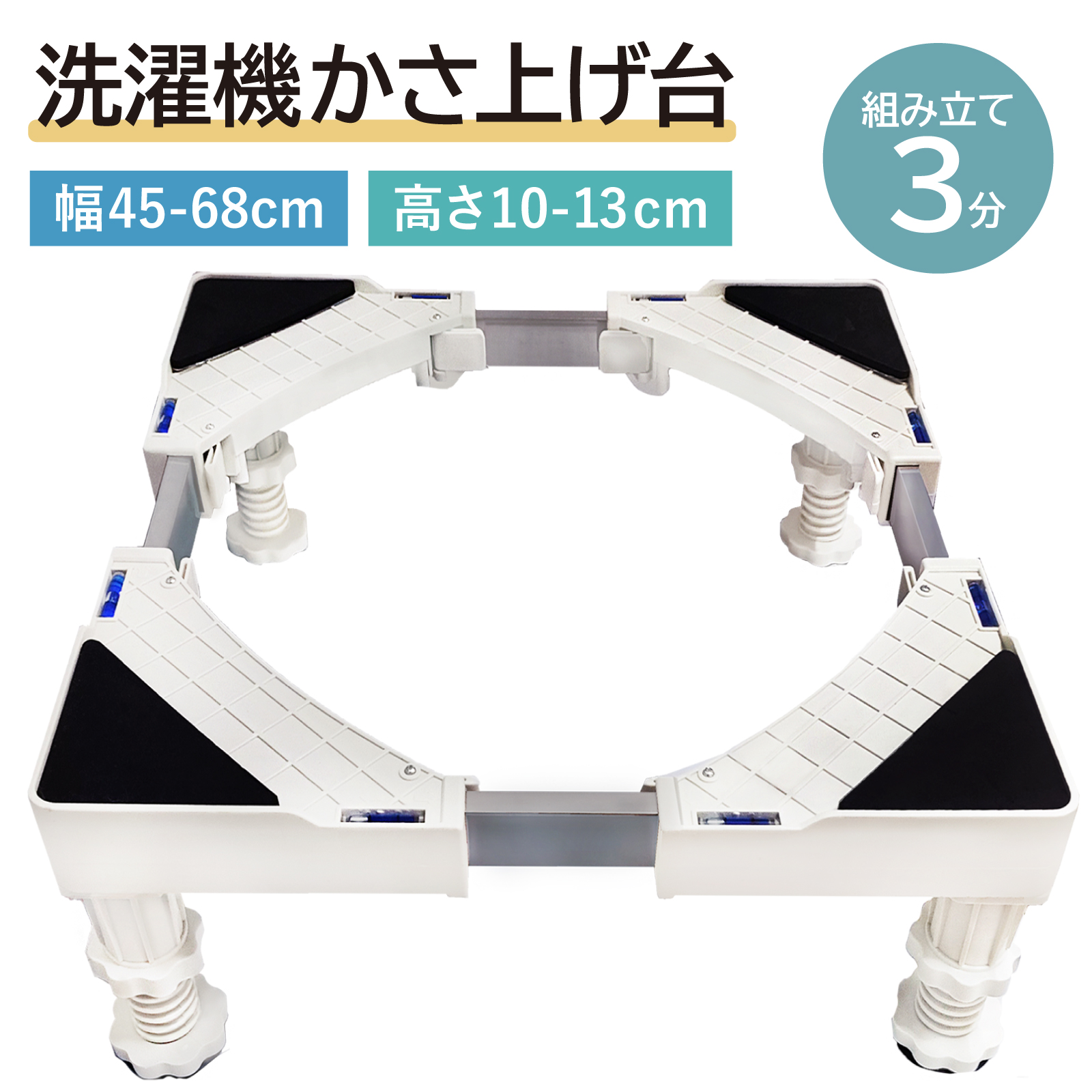 洗濯機 かさ上げ台 キャスターなし 防水パン 4足 洗濯パン 洗濯機 台 かさ上げ 洗濯機台 冷蔵庫 ドラム式 10cm 組み立て簡単 幅45cmから68cm対応