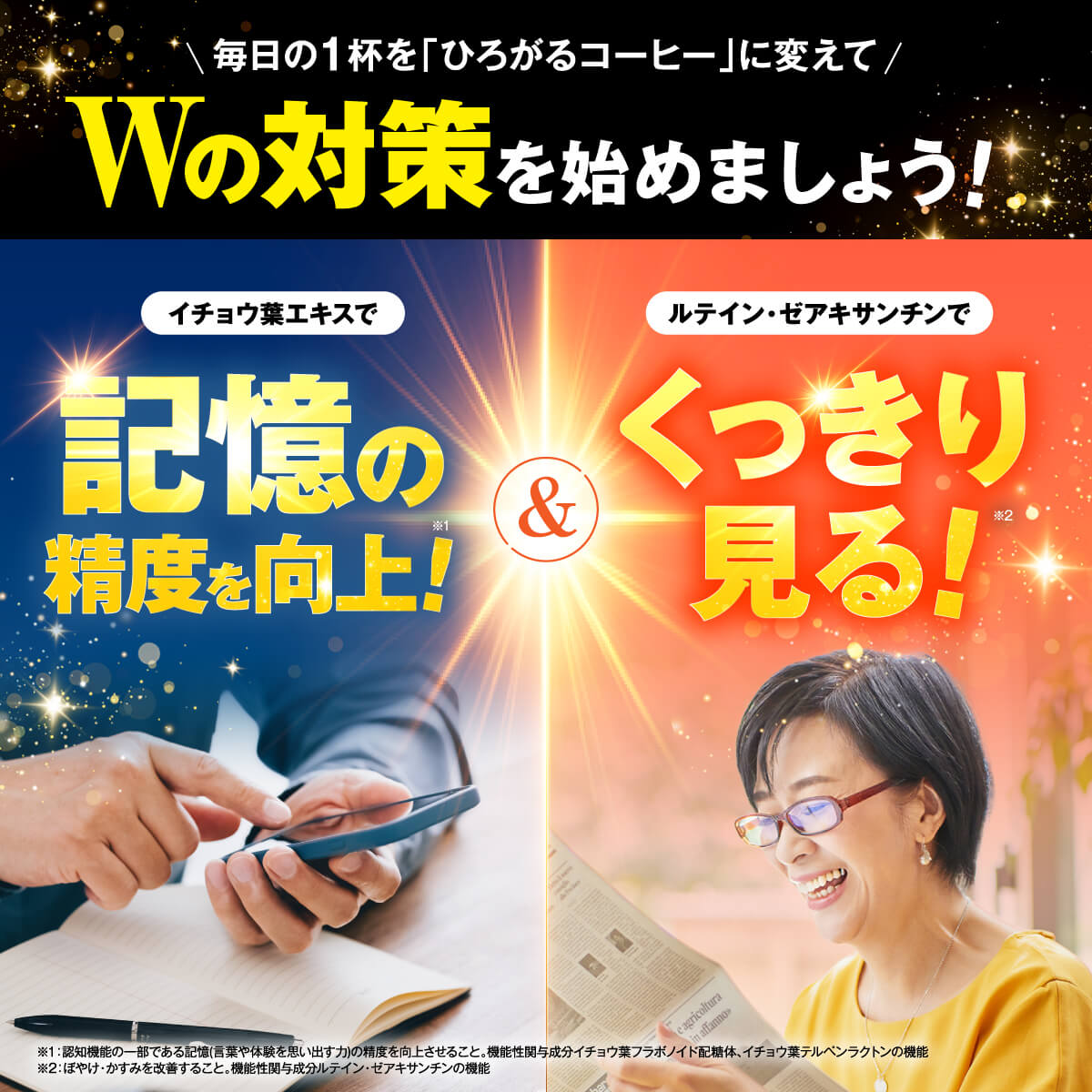 ひろがるコーヒー【 公式 】機能性表示食品 コーヒー 飲料 ユメミル ファンファレ 20包入 ルテイン コントラスト ぼやけ かすみ 老眼 ブルーライト 3箱セット