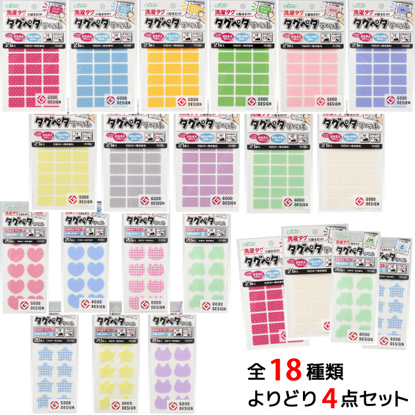 タグペタラベル 18種類から選べるよりどり4個セット 1組【メール便送料込】 代引・日時指定不可 洗濯タグに貼るカラーラベル お名前つけに KAWAGUCHI クロバー
