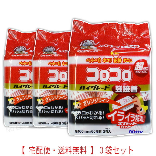 コロコロスペアテープ ハイグレードSC強接着 3巻入3袋セット 60周巻き 3袋セット【送料込】一部除く ニトムズ (C4312×3) 花粉対策