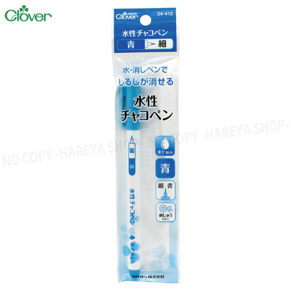 水性チャコペン(青) ペン先(細) 消しペンと水で消える 【8個までメール便OK!】 自然では消えない クロバー24-412