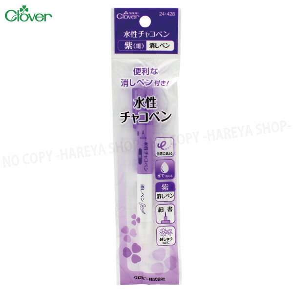 水性チャコペン(紫+消しペン) ペン先(細) 消しペンと水で消せ、自然にも消える 【8個までメール便OK!】 自然に約4〜14日で消える クロバー24-428