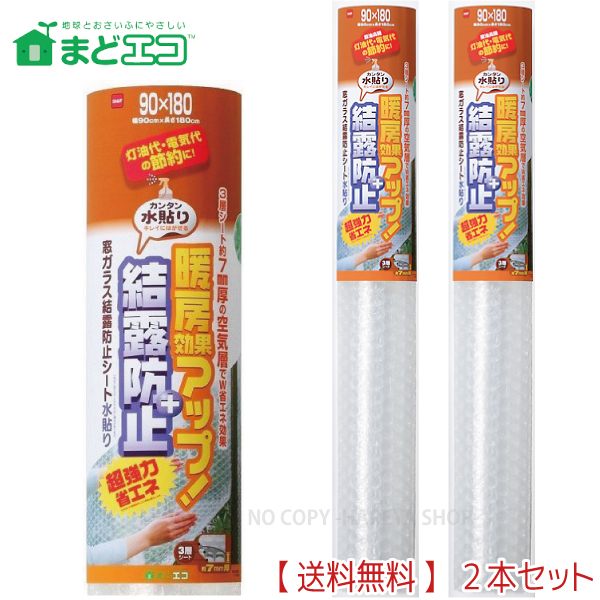 窓ガラス結露防止シート水貼り 最高の結露防止効果 7mm厚X90cmX180cm 2本【送料込】一部除く カンタン水貼り 暖房効果アップ ニトムズ E1590×2