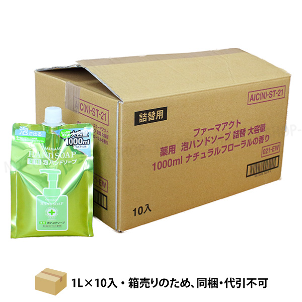 ファーマアクト 薬用 泡ハンドソープ 弱酸性 1L×10個【送料込】一部除く 【代引不可】【メーカー直送品】 泡タイプ 詰替1Lパウチ 熊野油脂2193 【直】
