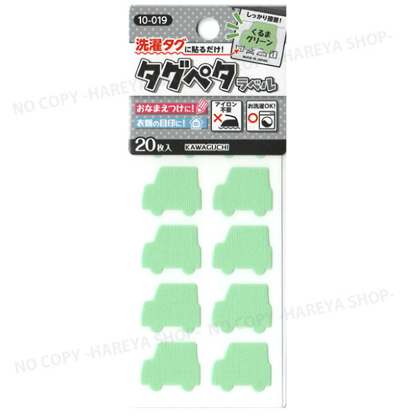 タグペタラベル 型抜き (くるまグリーン)20枚入 【いくつでもメール便OK!】 洗濯タグに貼るカラーラベル お名前つけに KAWAGUCHI10-019 クロバー71-714