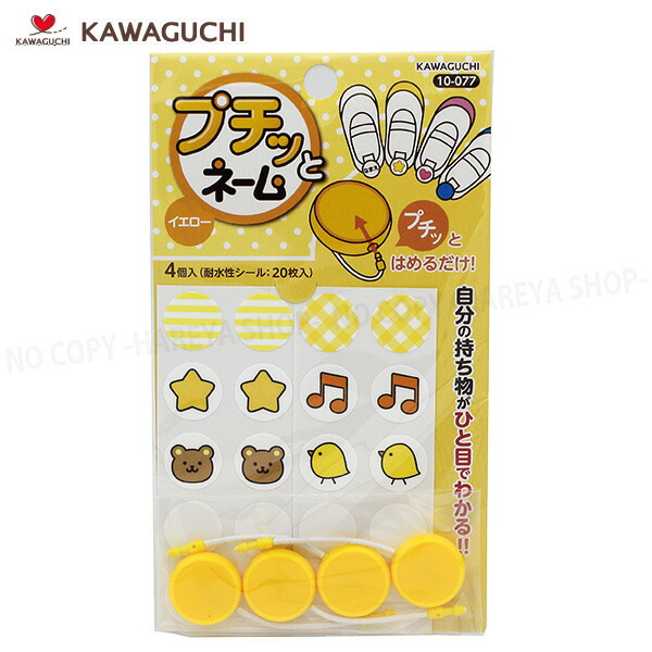 プチッとネーム(イエロー) 本体4個 耐水シール20枚入 【メール便OK!】 簡単に付けられる目印 上履き・かばん・傘に KAWAGUCHI10-077 クロバー71-156