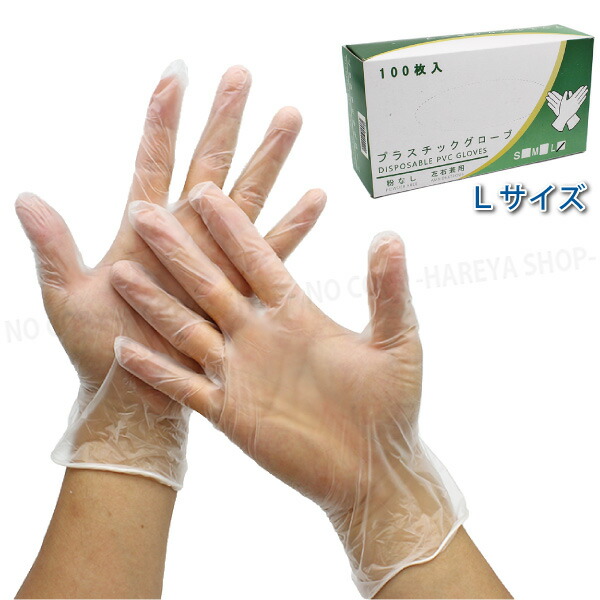 プラスチックグローブ Lサイズ 100枚入 半透明・パウダーフリー 左右兼用タイプ 【業】