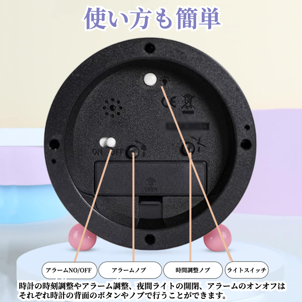 | 商品説明 | 【豊かな色彩文字盤】 退屈な数字に比べ、豊かな色彩は、子供たちが一目で時計の文字盤の数字の意味を見ることができます。時針、分針、秒針を見るところを指示することができ、混乱がなく、より分かりやすいです。 【静音&連続秒針】 この目覚まし時計は秒針のコチコチ音がない連続秒針を採用し、時計の計時をより正確にすると同時に、環境に静かさをもたらし、子供の枕元に置いても静かな目覚まし時計です。 【アラーム機能】 この学習用アナログ時計がアラーム機能があります。アラーム設置がとても簡単です。子供や女の子は定時に起きる、学ぶ或いは遊ぶのよい生活習慣を育てることができます。子供の時間管理に便利の学習時計です。 【操作がしやすい】 時計の時刻調整やアラーム調整、夜間ライトの開閉、アラームのオンオフはそれぞれ時計の背面のボタンやノブで行うことができます。操作がしやすいため、大人でもお子さんでもお使いいただきやすいです。 【プレゼントに最適】 可愛いおしゃれ卓上置き時計、子供に人気があり、素晴らしいプレゼントです。子供のパーティー、誕生日、子供の日、クリスマス、引越しまたは意味のある日に最適です。 【パッケージ内容】 目覚まし時計本体 × 1 選べる2色:ブルー&ピンク 単3電池1本のご使用を推奨します(電池は付属しておりません。別途お買い求めください)。 |