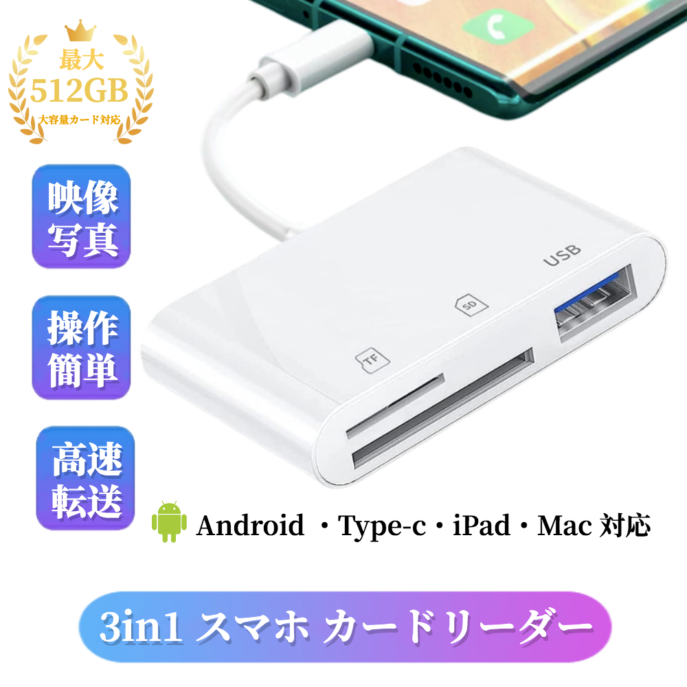| 商品内容 | 3in1 Type-C SD カードリーダー |