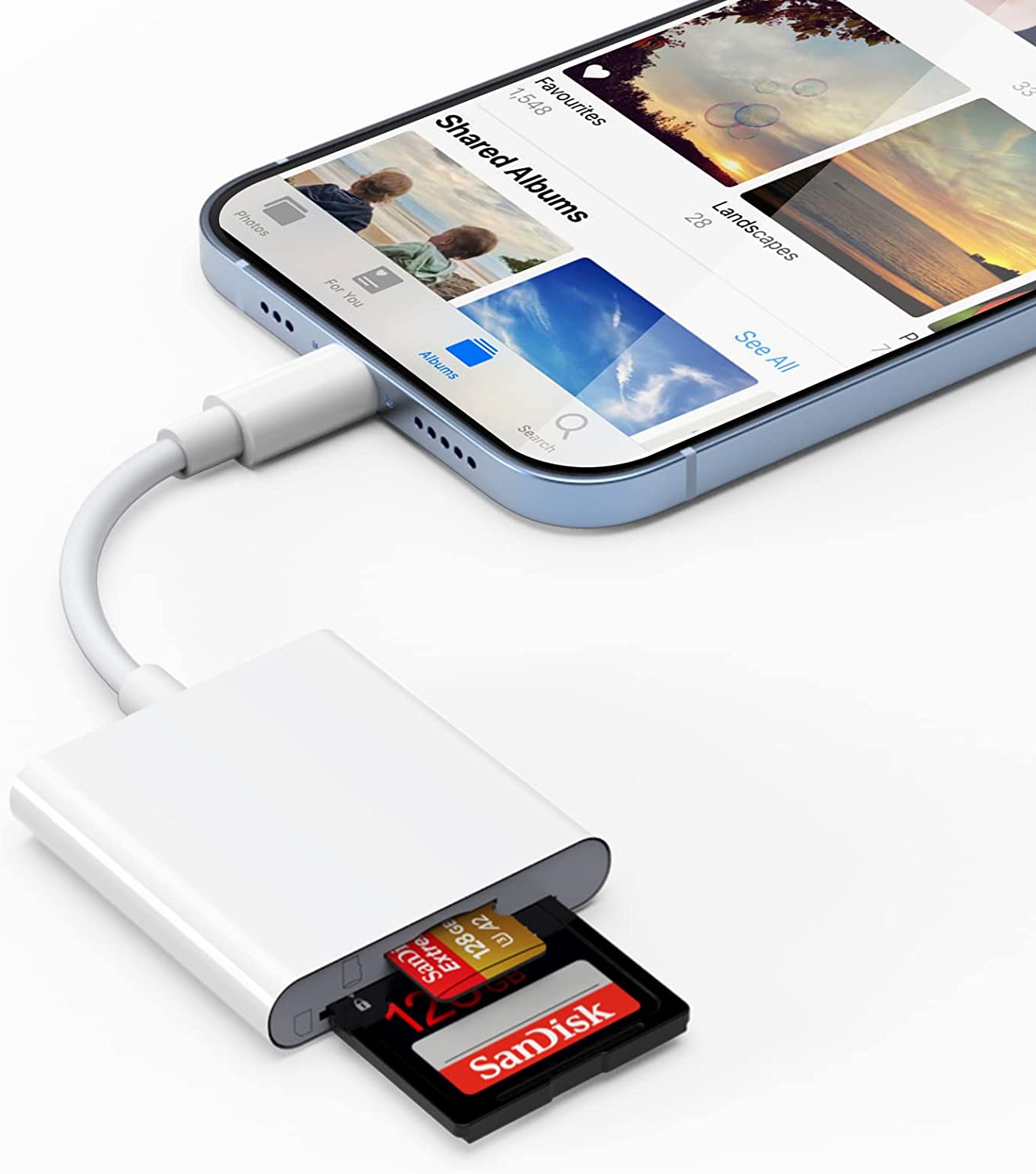 iPhone 14/1iPhone4 Pro/iPhone14 Plus/iPhone14 Pro Max/ iPhone 13/1iPhone13 Pro/iPhone13 Plus/iPhone13 Pro Max/iPhone12/iPhone12 Mini/iPhone12 Pro/iPhone12 Pro Max/iPhone11/iPhone11 Pro/iPhone11 Pro Max/iPhoneXs/iPhoneXs Max/iPad Pro/iPad Air/iPad Mini/ iPad mini/mini 2/mini 3/mini 4/Air/Air 2/Pro などに対応。JPEG、RAW等一般的な写真、H.264やMPEG-4形式のSDやHDビデオに対応。(Type-Cをサポートしません)。