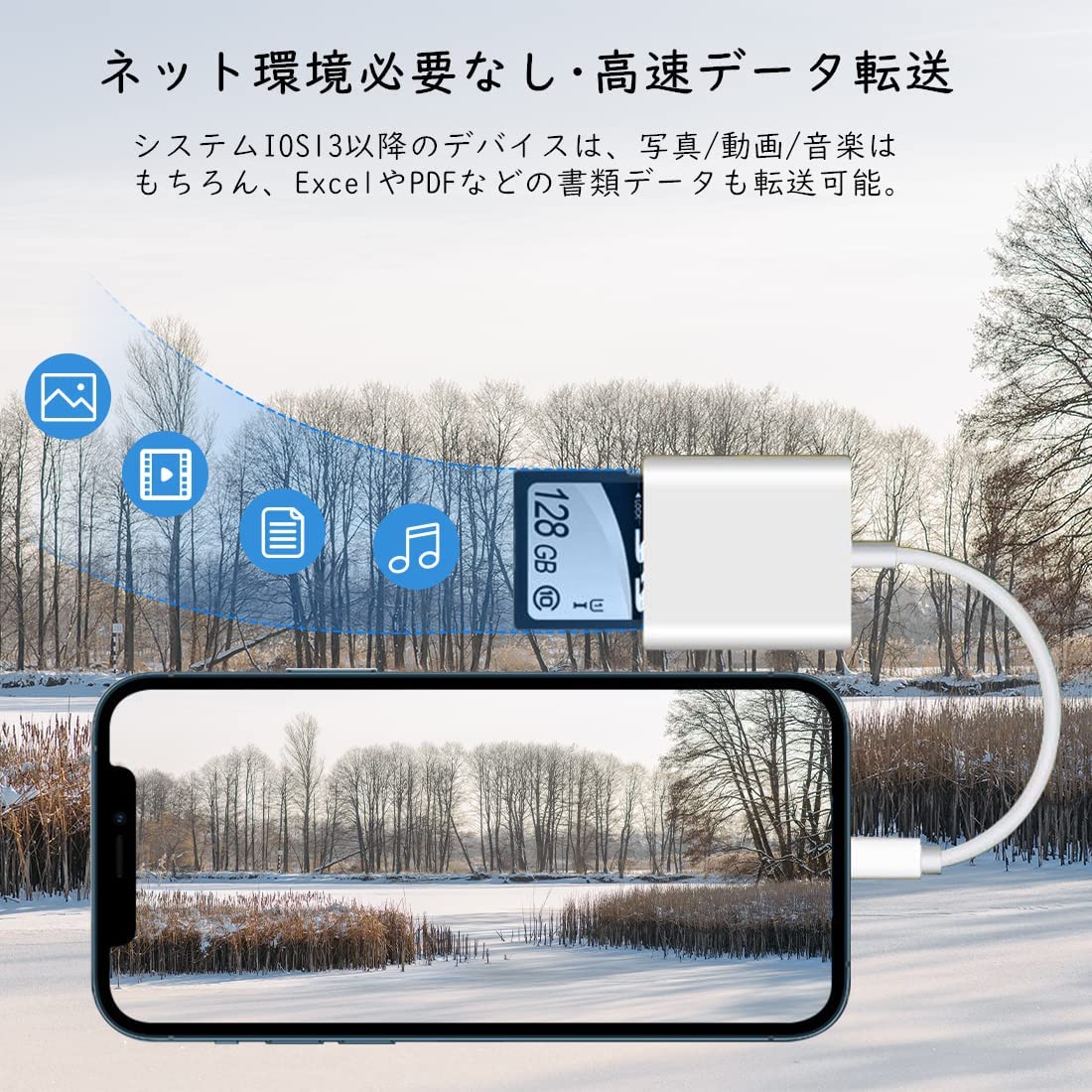 | iPhone 2in1 SDカードリーダー iPhone iPadに適用 sdカードカメラリーダー SD/TF カメラアダプタ SD MicroSDカード両用 メモリカードリーダー 高速双方向データ転送 ファイル 写真 オーディオ ビデオ 動画 Word Excle PPT PDF 読み込み 読み書き MicroSD SDHC SDXCカード両対応 I0S13システム以降に デュアルカード同時読み取りと相互送信をサポート iPhone 14 Pro/14/14 Pro Max/13/13 Pro/12/11/XR/XS/X/8/7/iPad対応