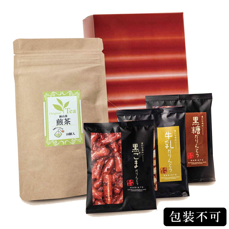 黒糖かりんとう15g、黒胡麻かりんとう15g、牛乳かりんとう15g×各1袋,狭山煎茶ティーバッグ3g×10袋入り