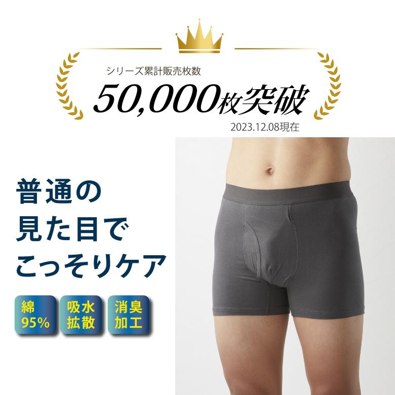 見た目は普通のボクサーパンツなのに、しっかり尿漏れ対策できるアイテムです。