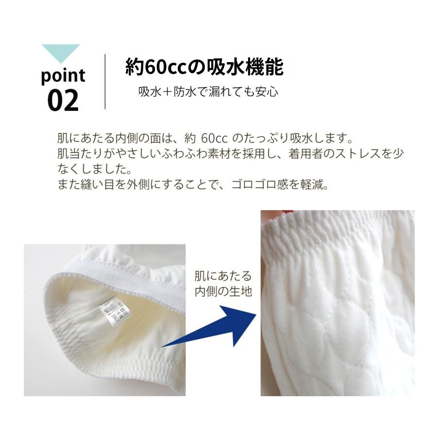 防水機能に加えて、約60cc程度の吸水力でしっかりサポート。