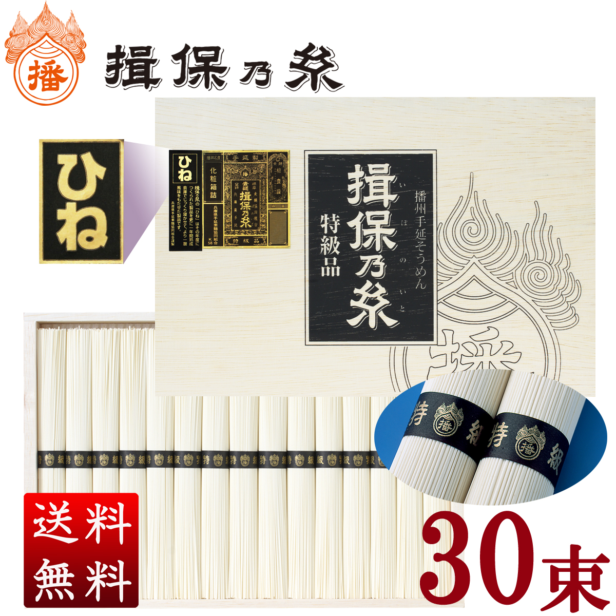 揖保乃糸 ギフト そうめん 特級品ひね 30束入 1,500g